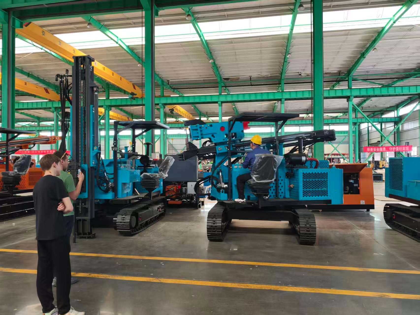 Le point fort de l'inspection a été la démonstration des machines sur site, au sein de l'atelier. Dans la zone d'essai dédiée, les techniciens ont manipulé les TZ536 et TZ670, simulant des opérations de forage et de battage de pieux dans différentes conditions de travail, en intérieur.
