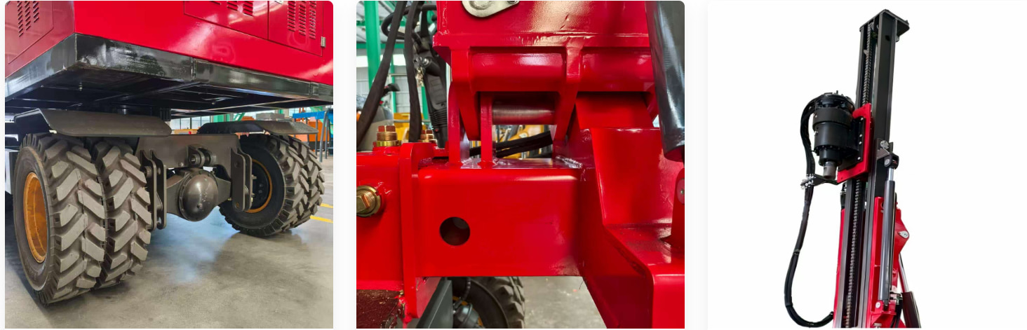 L'utilisation de moteurs et de roulements de rotation de marques nationales réputées, fournis par Zhongyi, permet une rotation du fuselage à 360°. Ceci permet aux ouvriers du bâtiment d'ajuster facilement l'angle et la direction de l'engin de forage sur le chantier, répondant ainsi aisément aux différentes exigences opérationnelles.